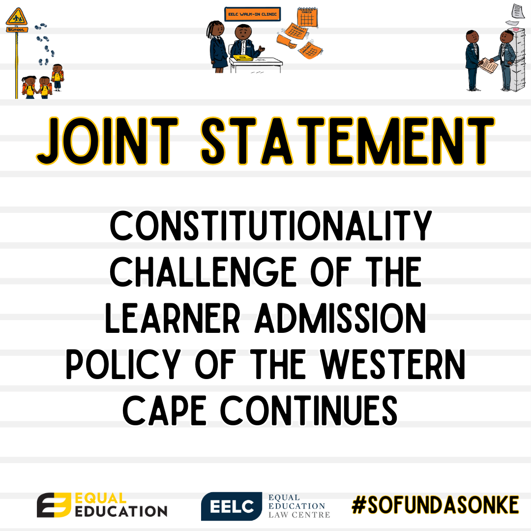 Joint media statement: Constitutionality challenge of the learner admission policy of the Western Cape continues